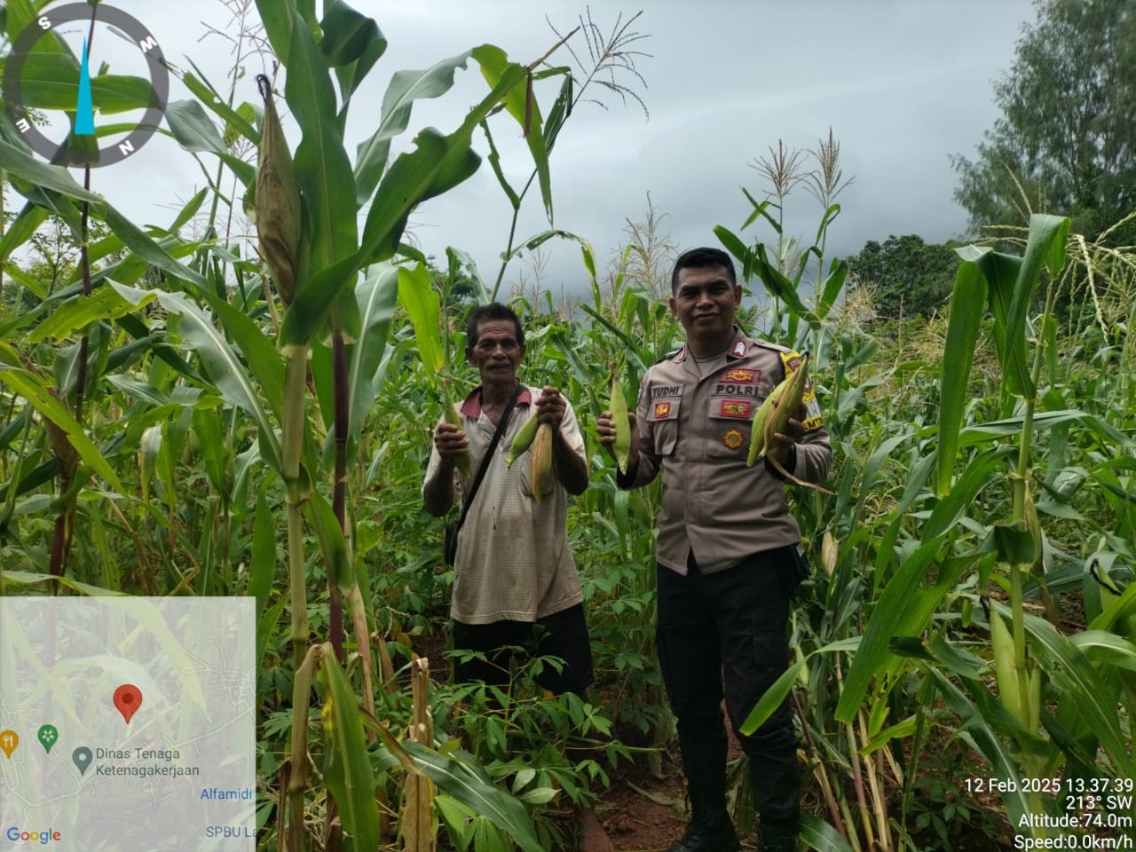 Bhabinkamtibmas Desa Karang Jaya Bersama Warga Cek Lokasi Penanaman Jagung